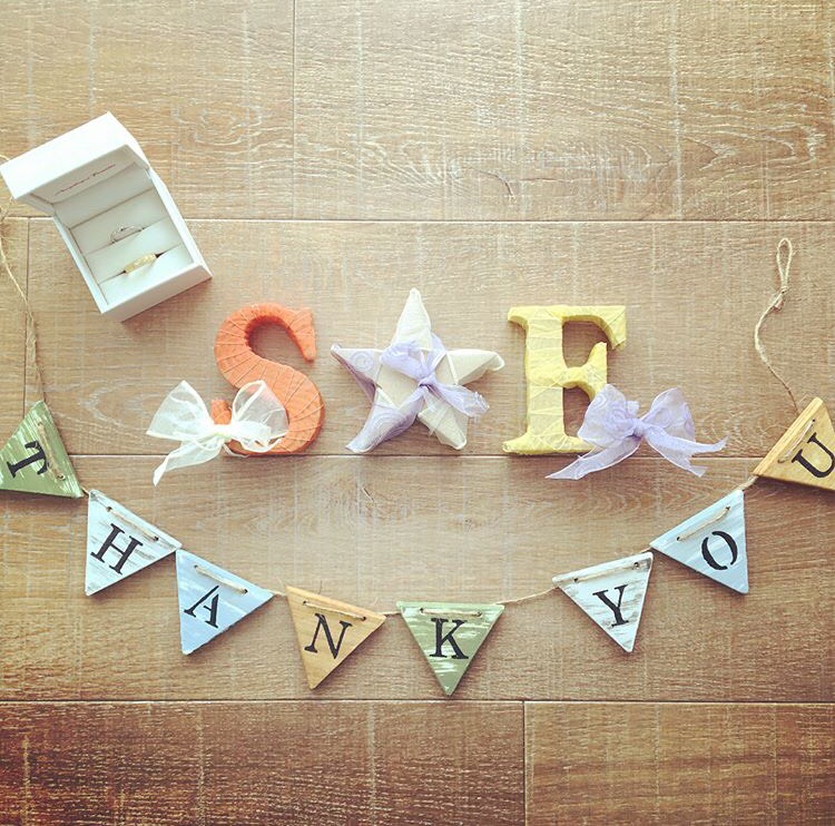 さわやかで可愛らしいガーランドとイニシャルオブジェ。