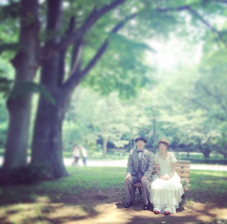 そしておふたりでベンチにすわってのお写真も。