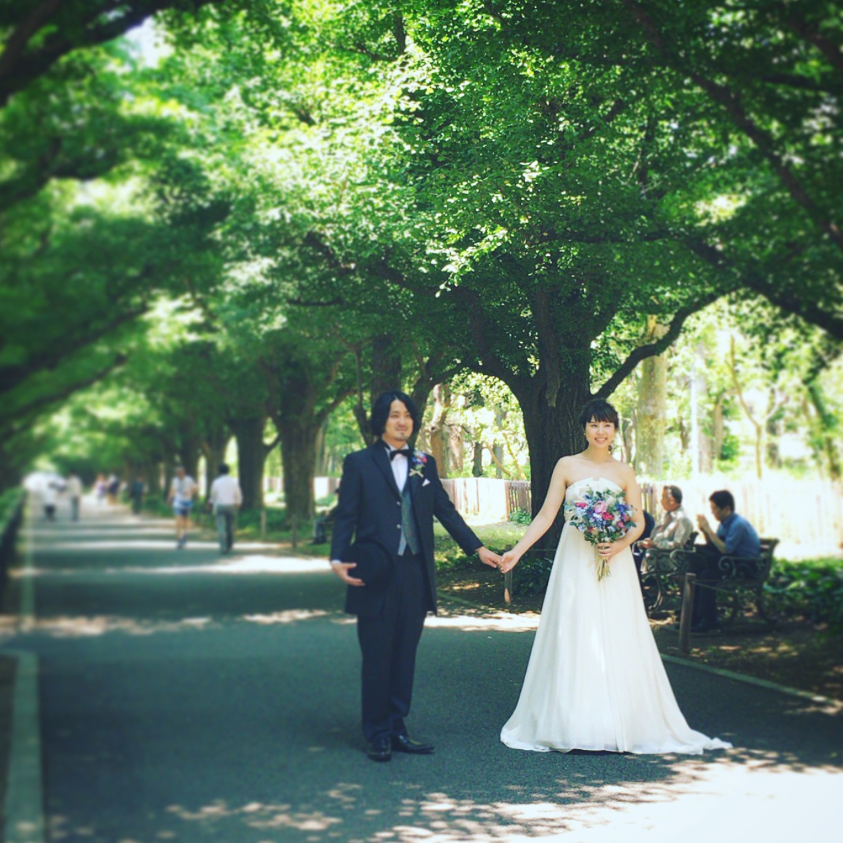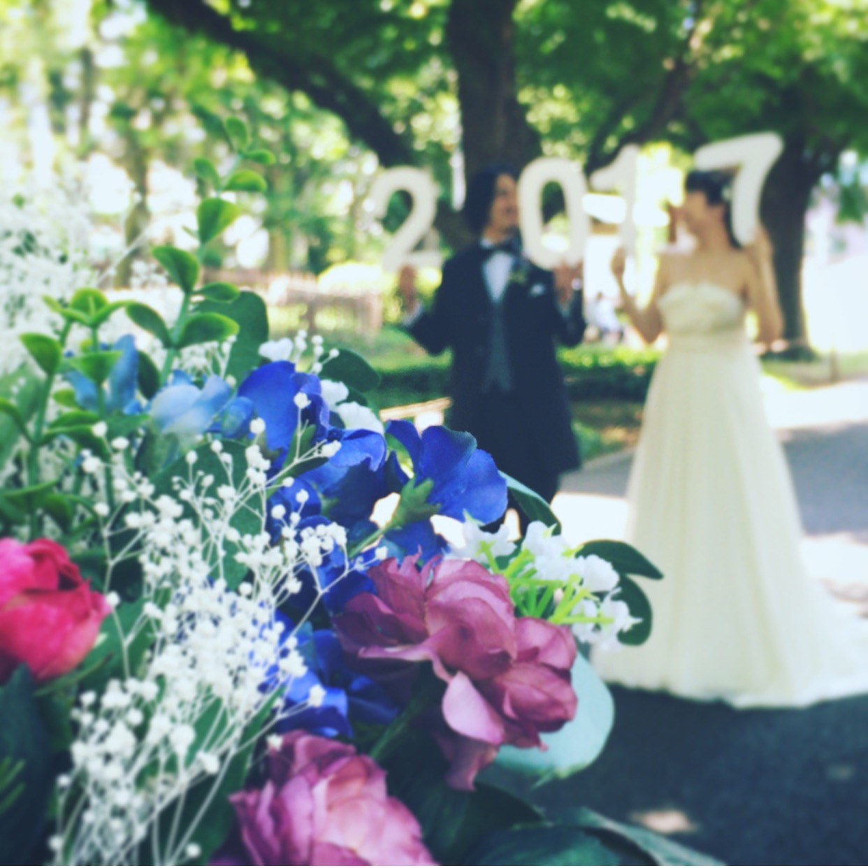 ブーケのカラフルな色合いも緑とマッチしてますね~~