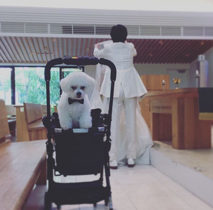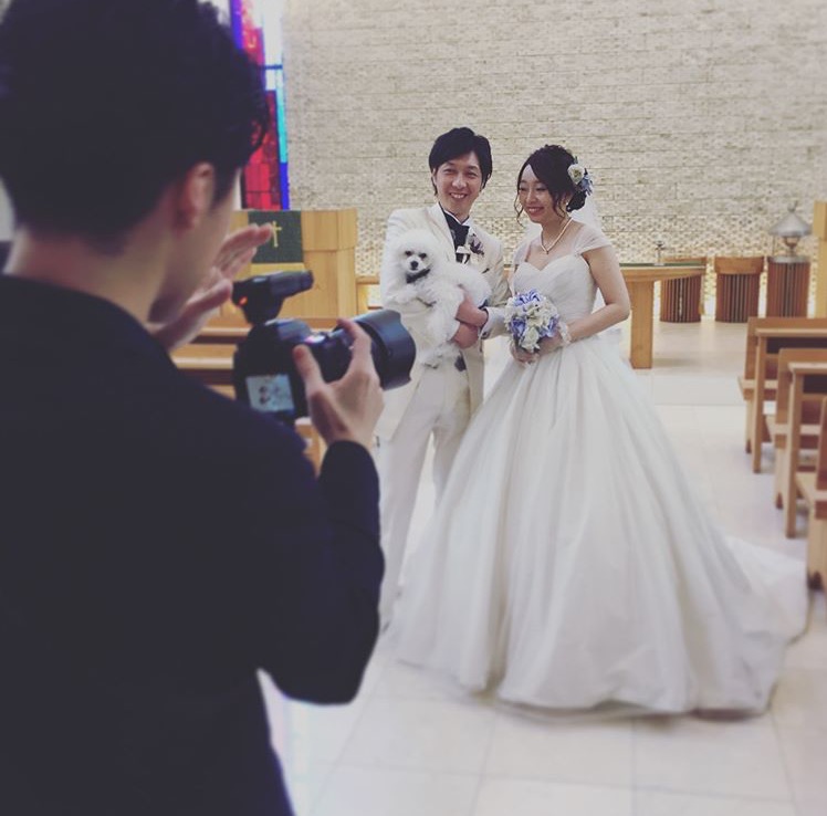 アフロ犬こと、ビションフリーゼのポッケくんと一緒にチャペルフォト!