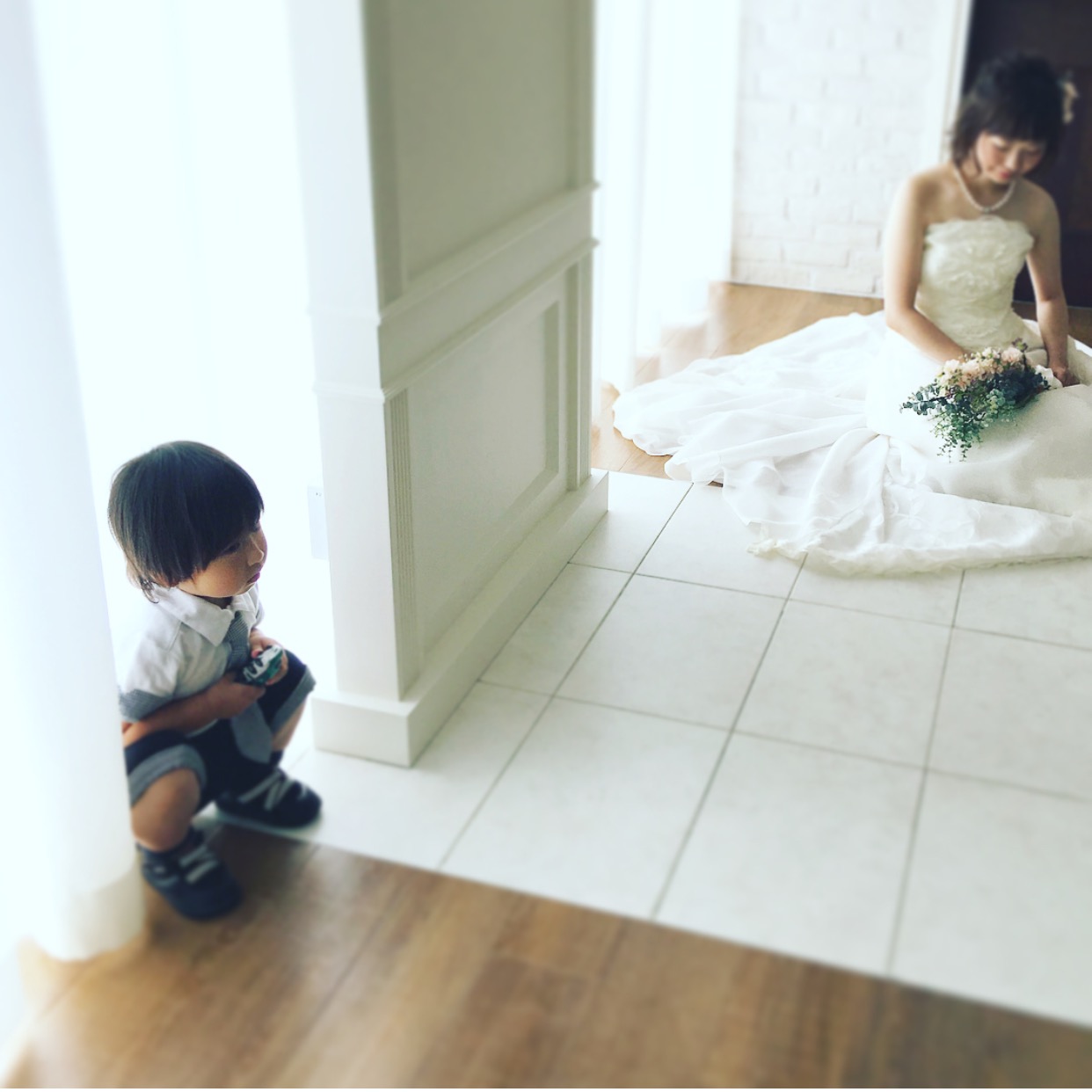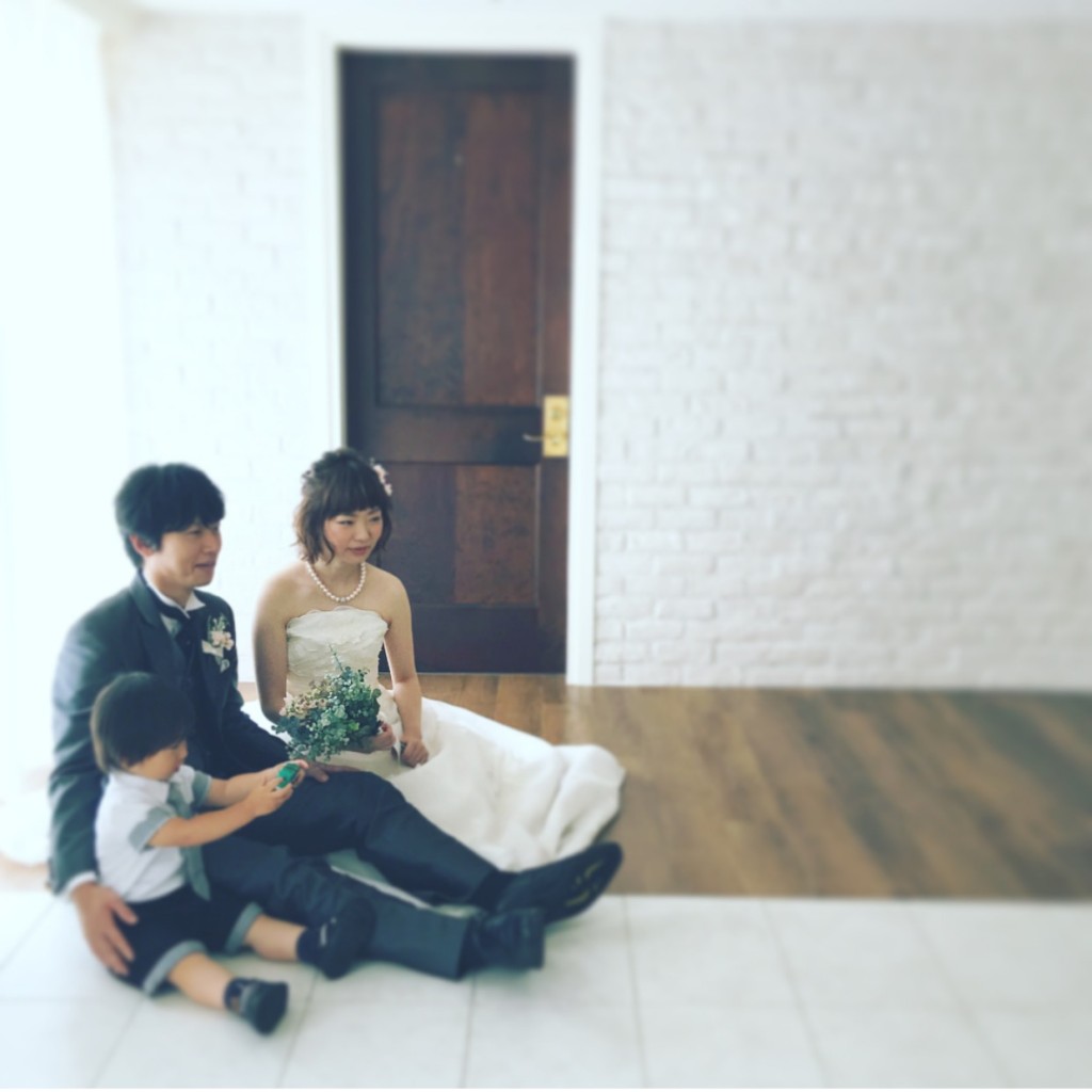 ご新郎さま、ご新婦さま、2歳の男の子、ご家族3人での撮影です。^^