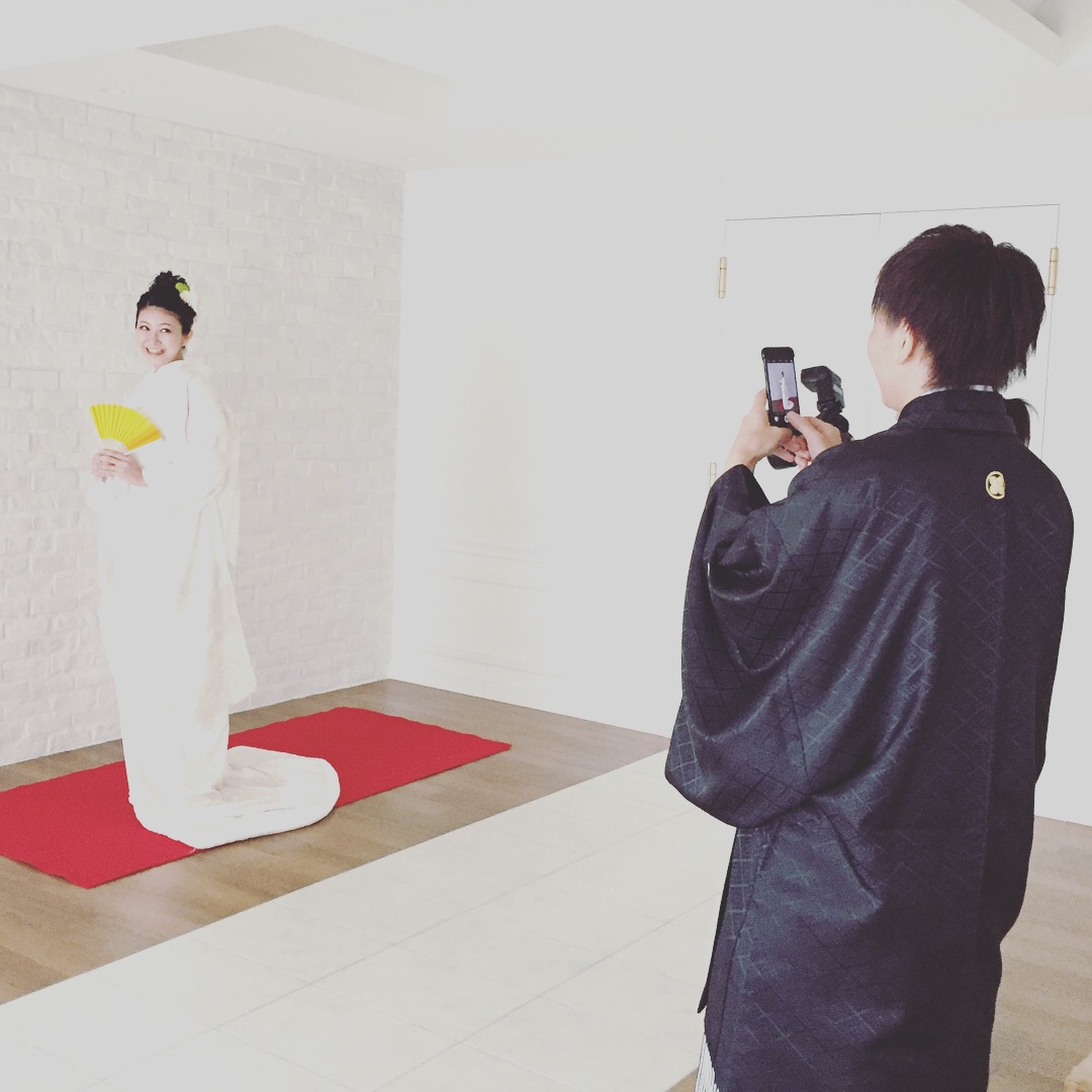 先日の『写真だけの結婚式』をご紹介いたします! 洋装と和装どっちもプラン♪ ご家族さまに見守られつつ、洋装はチャペルで。 和装はスタジオにて撮影させていただきました! 前面が大きくガラス張りになっているこちらのチャペル。 雨の日でも明るく撮影できるのです^ ^ご家族さまに見守られて、ちょっぴり照れるおふたりもまた可愛い♪ 和装にお着替えしたら、お次はスタジオで! 白無垢の立ち姿も美しいご新婦さま。 これはもうシャッター音が止まりませんね^ ^
