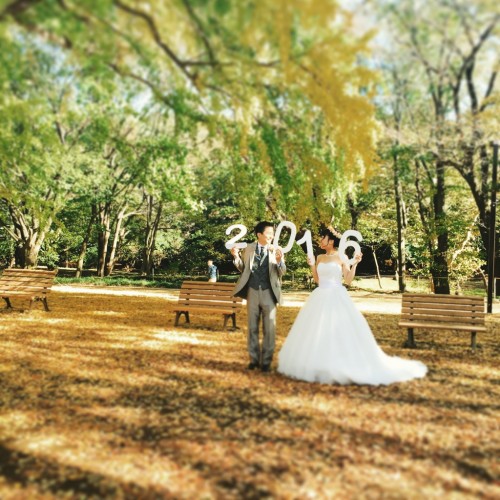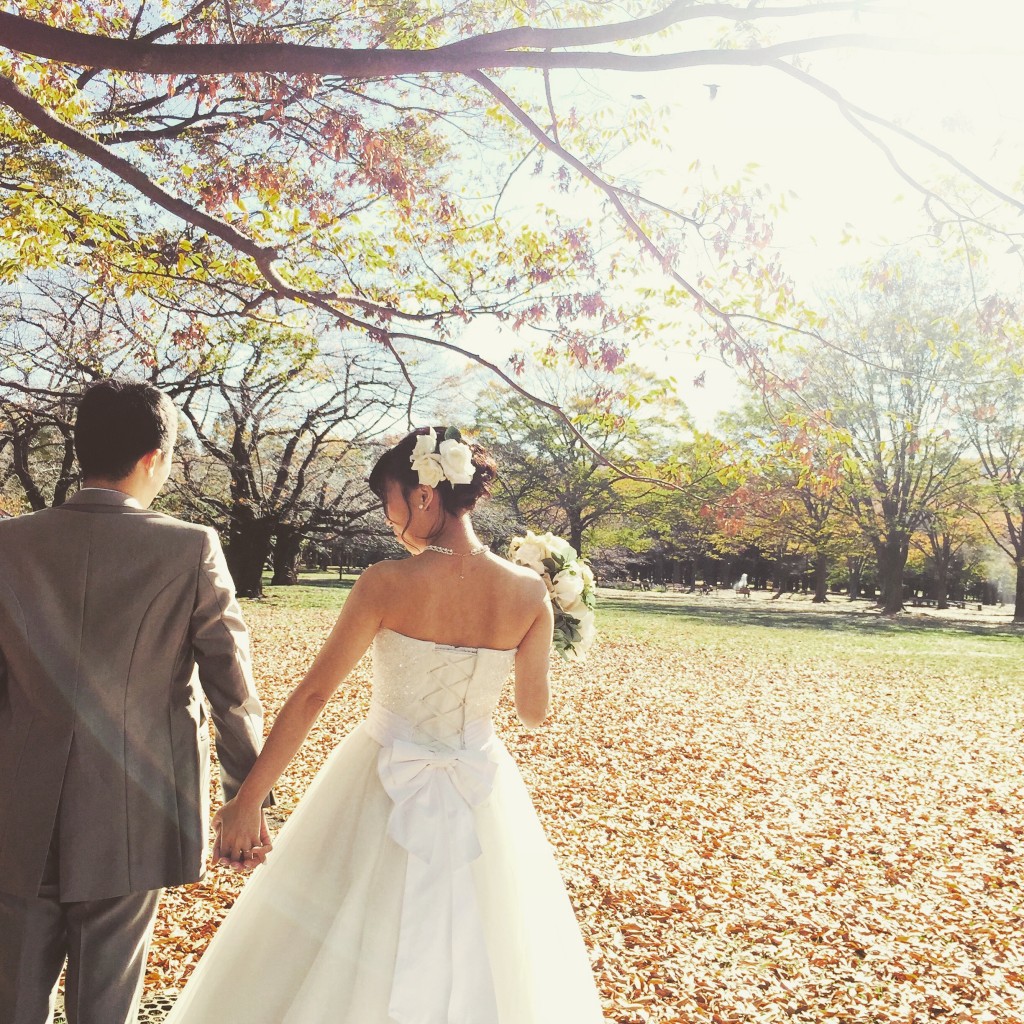 ハラハラと落ちる葉っぱたちがお二人を祝福する紙吹雪のようで