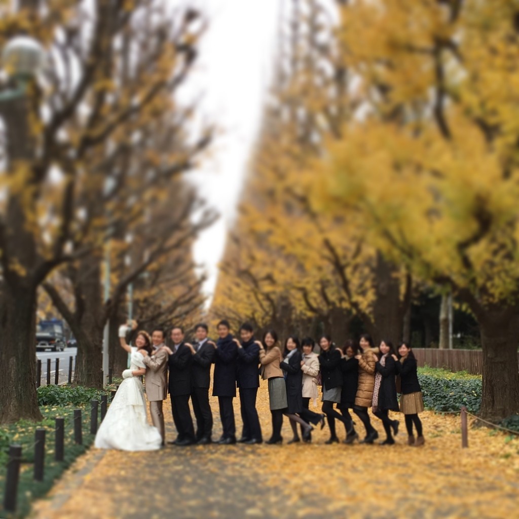 ステキな銀杏の絨毯の上、皆様で前ならえ♪