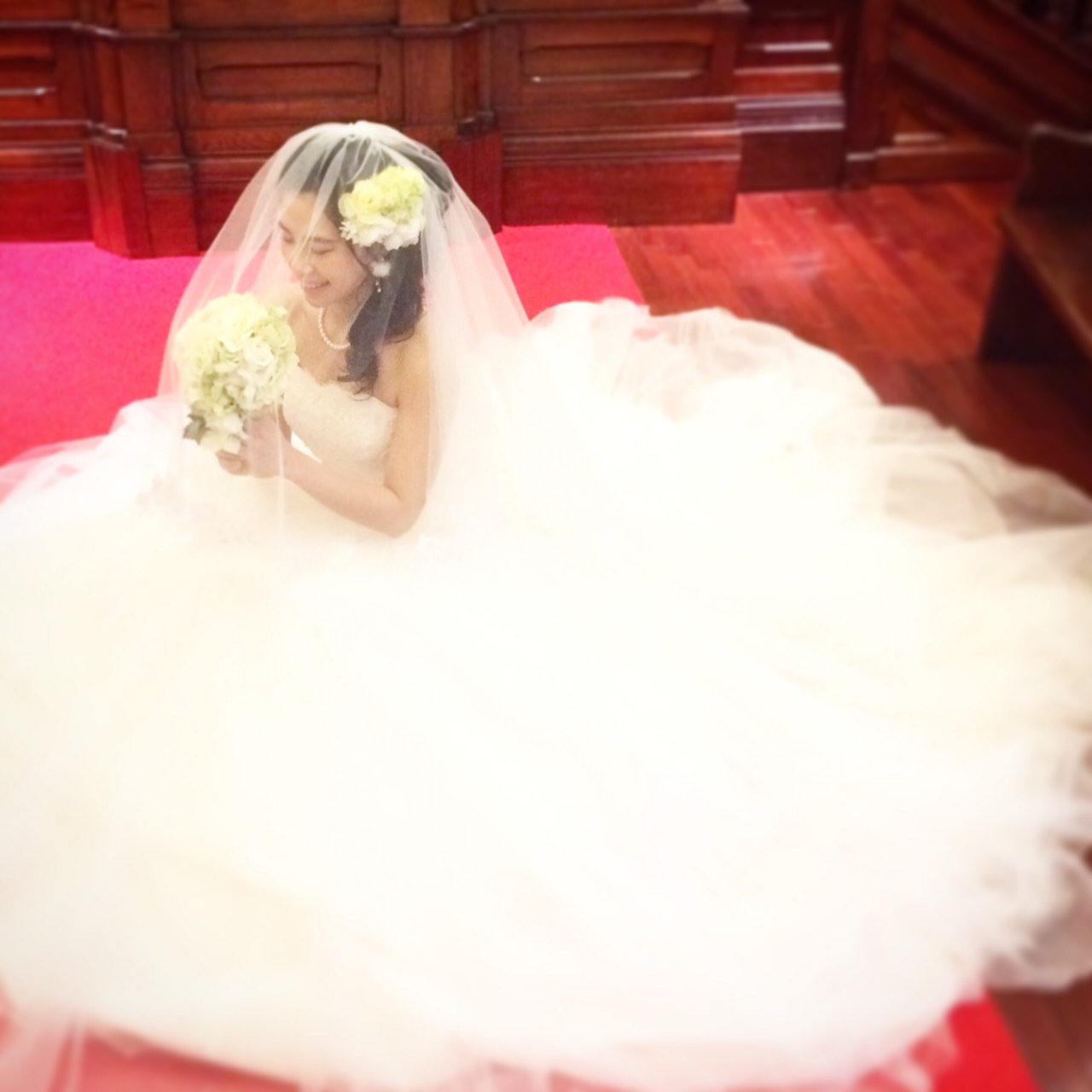 赤いバージンロードに、真っ白なドレスをお召しになったご新婦さま・・・